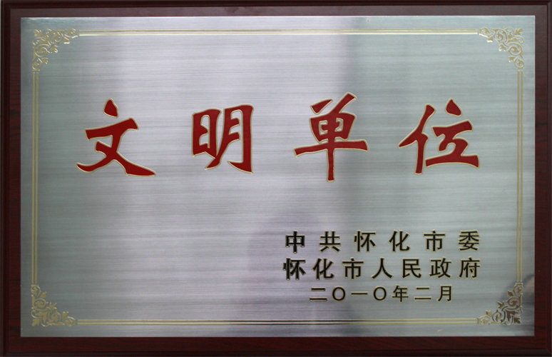 2010年2月公司被中共怀化市委、市人民政府评为“文明单位”