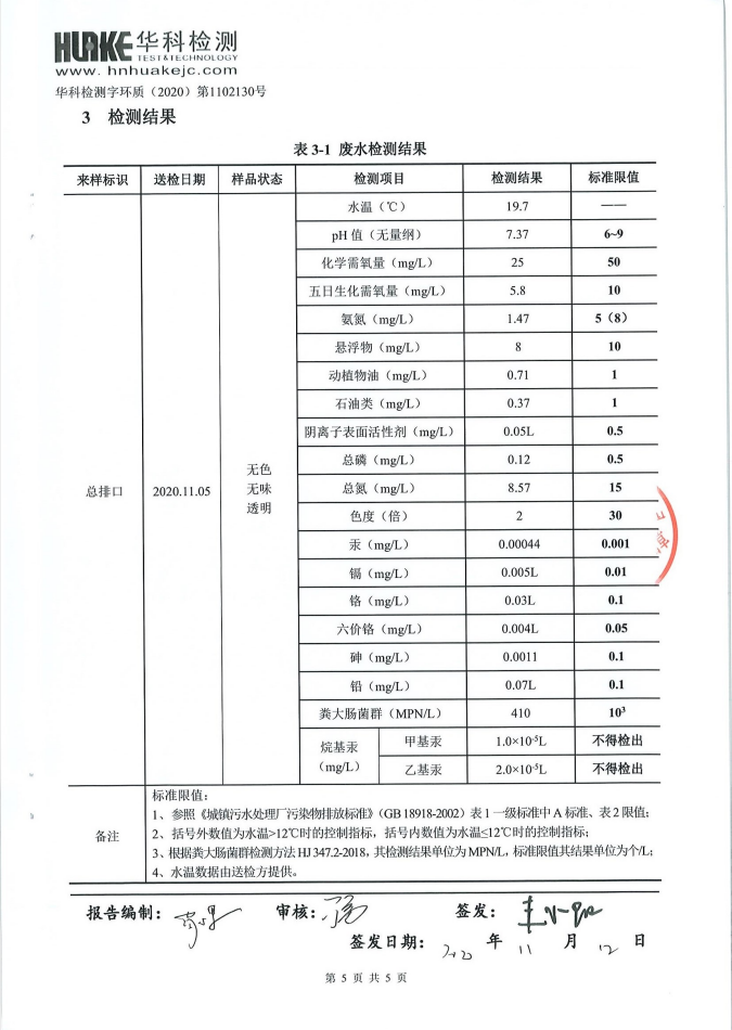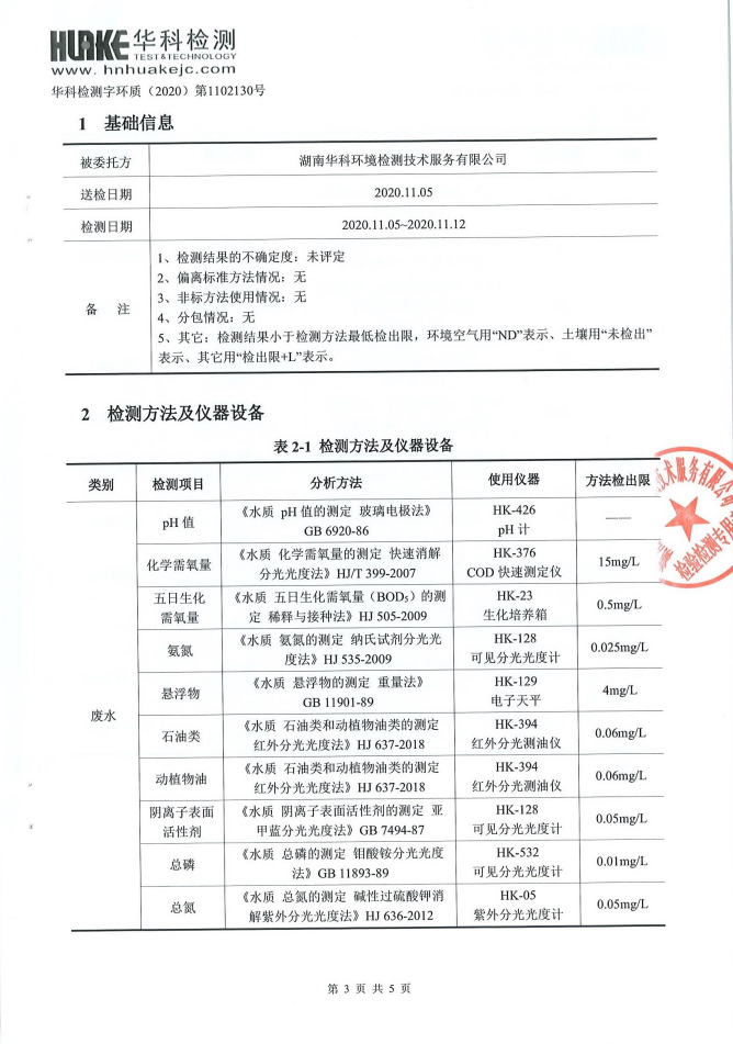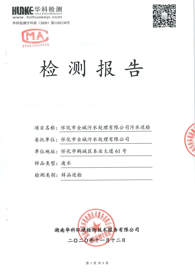 湖南怀德检测技术有限公司 2025年10月 出水水质检测报告